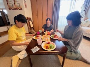 7/6 キッズクラブ 教会の交わり 最初はスポーツクラブと一緒に走りました。それから、ストレッチの代わりにこの前のキャンプでやったダンスをやりました。今週もバトミントンをやりました。ただ適当に打ち返すだけではなく、的確に打つことをしたかったのでフラフープを持っていって、シャトルをそこに通すということに挑戦しました。だいぶ苦戦していましたが、根気強くやっていました。