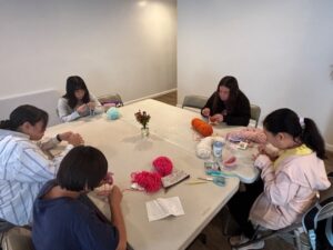 今週もそれぞれ先週始めた編みぐるみを作っていきました。ゆいとエスターは手順を教えると自分で進めて、本体が完成しました。来週はパーツをつける予定です。かなとぴーちゃんは調べたりしながらやっていました。ジェームスはやり方は覚えていて、先週より早くできるようになりました。途中できつくやりすぎて、続けにくいからリスタートしたいと言ってやり直しましたが、元のサイズまで編み終わってました。