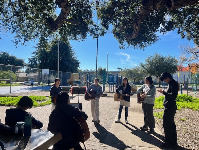 まずは、今までみんなが弾いたことがある曲(Alive Alive, Victory Song, My God Is a Good God)を数回づつ賛美しました。その後にForeverという新しい曲(かな、ひより、えみり、と私は少し練習したことがある曲)を練習しました。少し変わったストラミングだったのでみんなで練習しました。せいゆはギターはひかず、賛美してました。トマスはギターを持ってきて、弾けるところをやっていました。