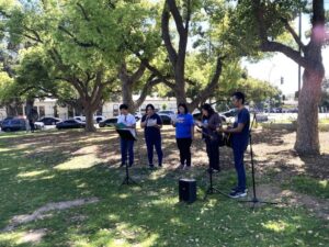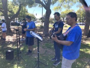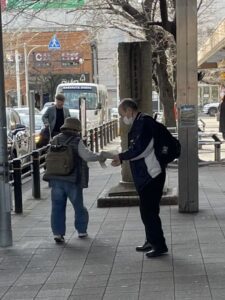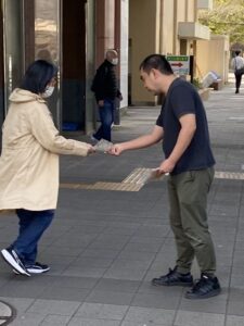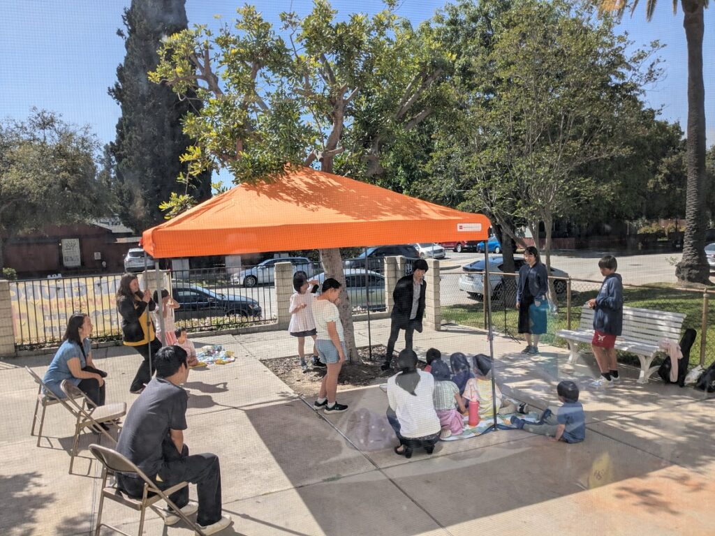 ー有志たちで行われた、教会周辺でのイースター礼拝、人形劇のトラクト配り
