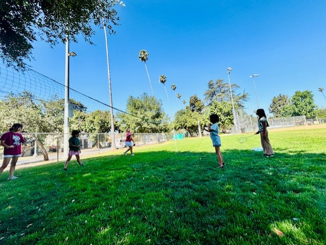 最初はスポーツクラブと一緒に走りました。それから、ストレッチの代わりにこの前のキャンプでやったダンスをやりました。今週もバトミントンをやりました。ただ適当に打ち返すだけではなく、的確に打つことをしたかったのでフラフープを持っていって、シャトルをそこに通すということに挑戦しました。だいぶ苦戦していましたが、根気強くやっていました。