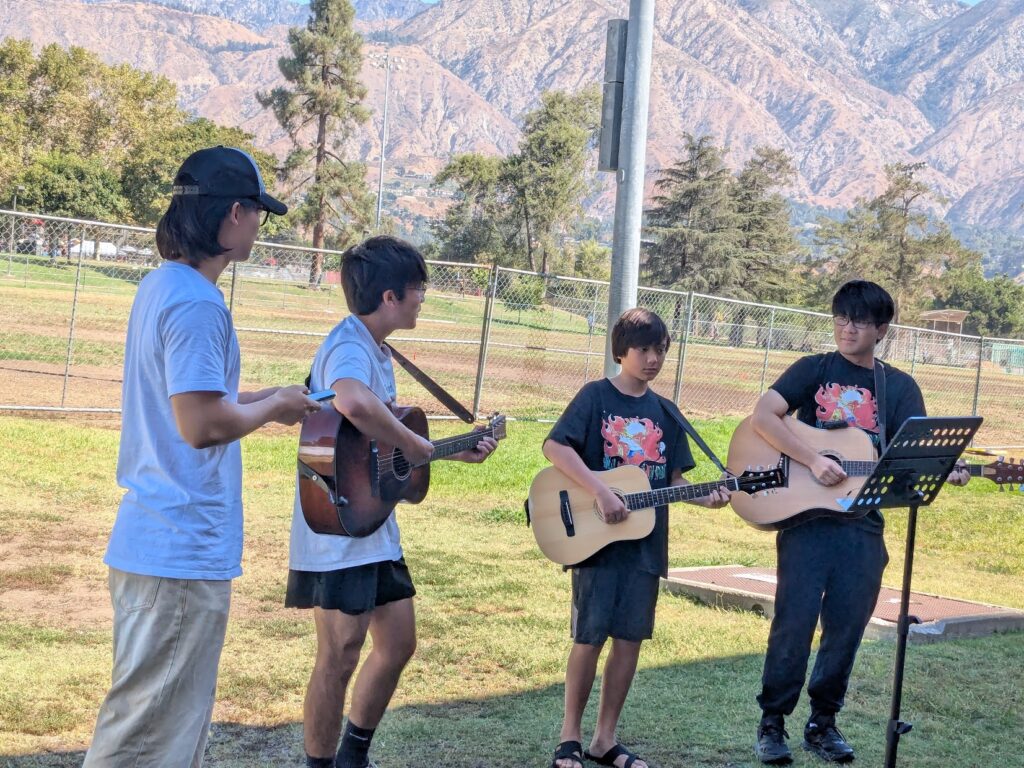 まずは、今までみんなが弾いたことがある曲(Alive Alive, Victory Song, My God Is a Good God)を数回づつ賛美しました。その後にForeverという新しい曲(かな、ひより、えみり、と私は少し練習したことがある曲)を練習しました。少し変わったストラミングだったのでみんなで練習しました。せいゆはギターはひかず、賛美してました。トマスはギターを持ってきて、弾けるところをやっていました。